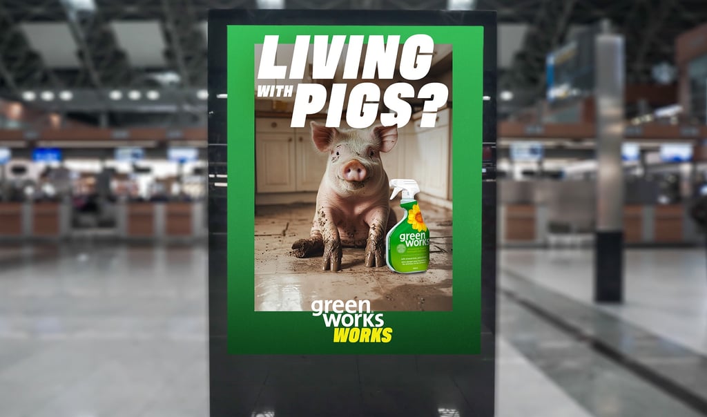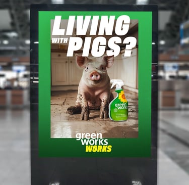 Living with pigs? That's the mindset we took when introducing consumers to Clorox's natural line, Green Works. We let pigs run through a house and clean it up with Green Works cleaning products. Simple and porky.